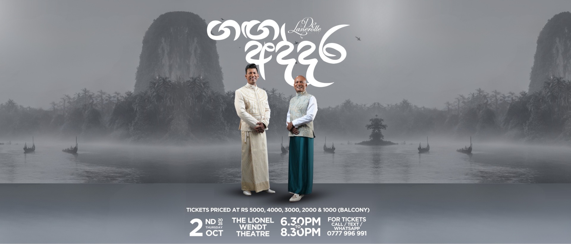 Join the De Lanerolle Brothers for Ganga Addara, an extraordinary evening dedicated to the beauty of Sinhala music. Experience powerful harmonies, timeless classics, and heartfelt performances in one unforgettable night.